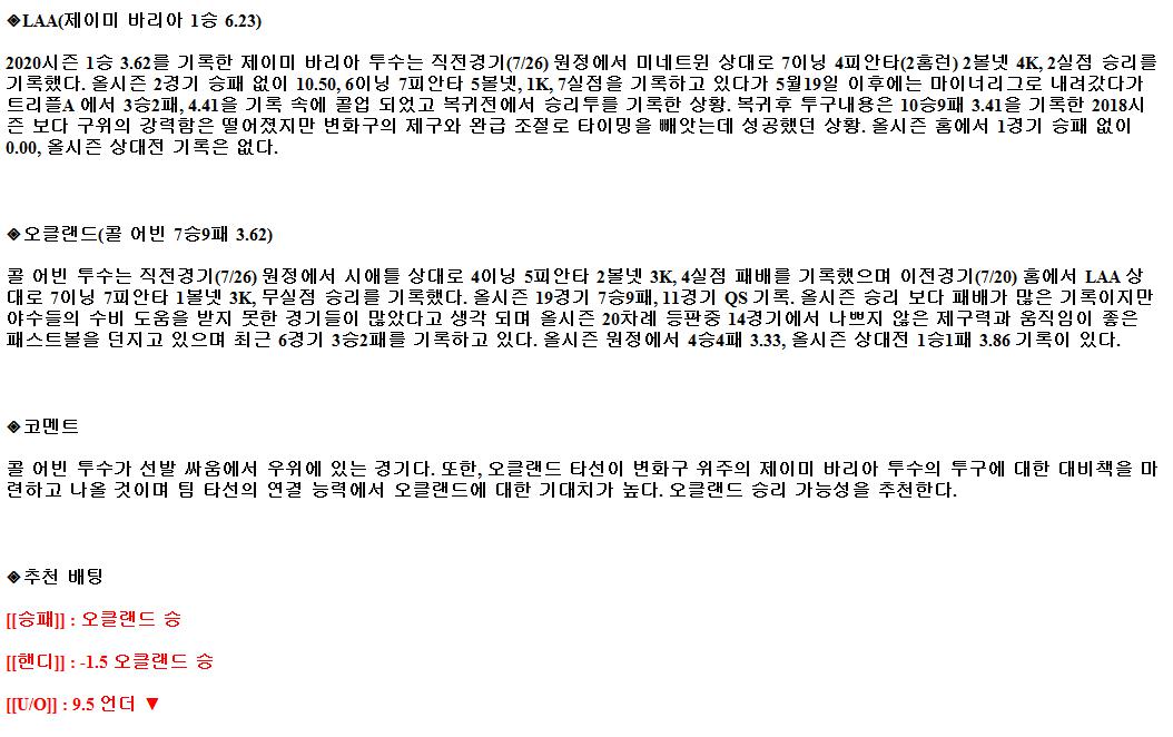 2021년8월1일 MLB LA에인절스 오클랜드 해외야구중계