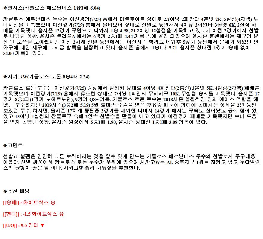 7월30일 MLB 캔자스시티 시카고W 해외야구중계