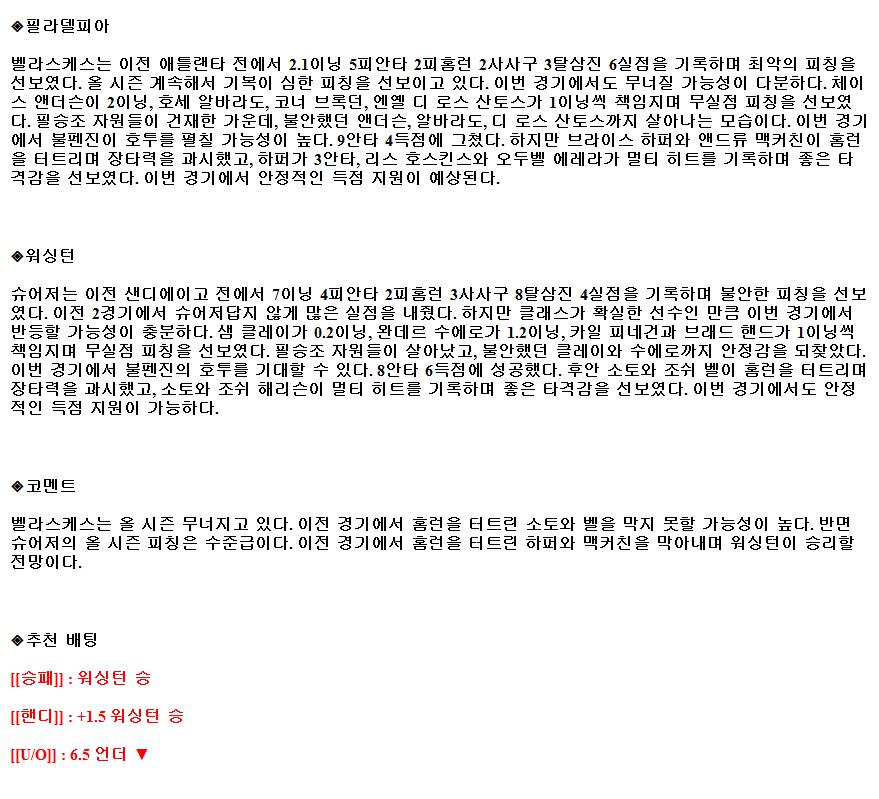 7월30일 MLB 필라델피아 워싱턴 해외야구중계