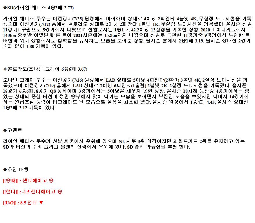 7월31일 MLB 샌디에이고 콜로라도 해외야구중계