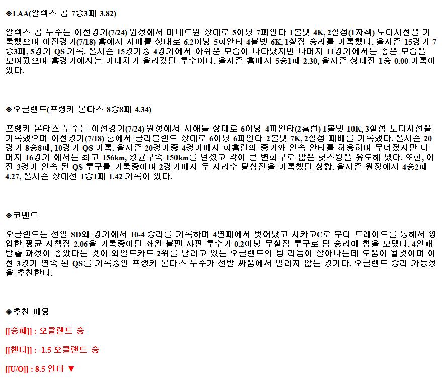 7월30일 MLB LA에인절스 오클랜드 해외야구중계