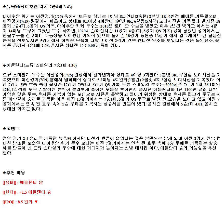 7월30일 MLB 뉴욕메츠 애틀랜타 해외야구중계