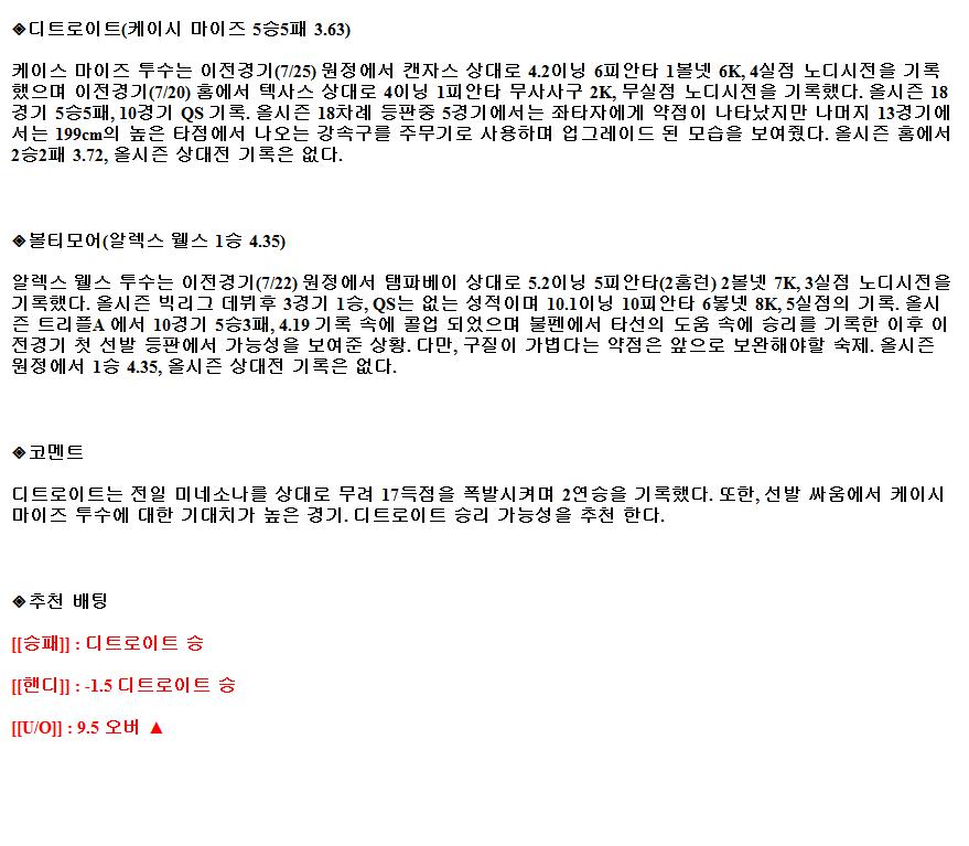 7월30일 MLB 디트로이트 볼티모어 해외야구중계