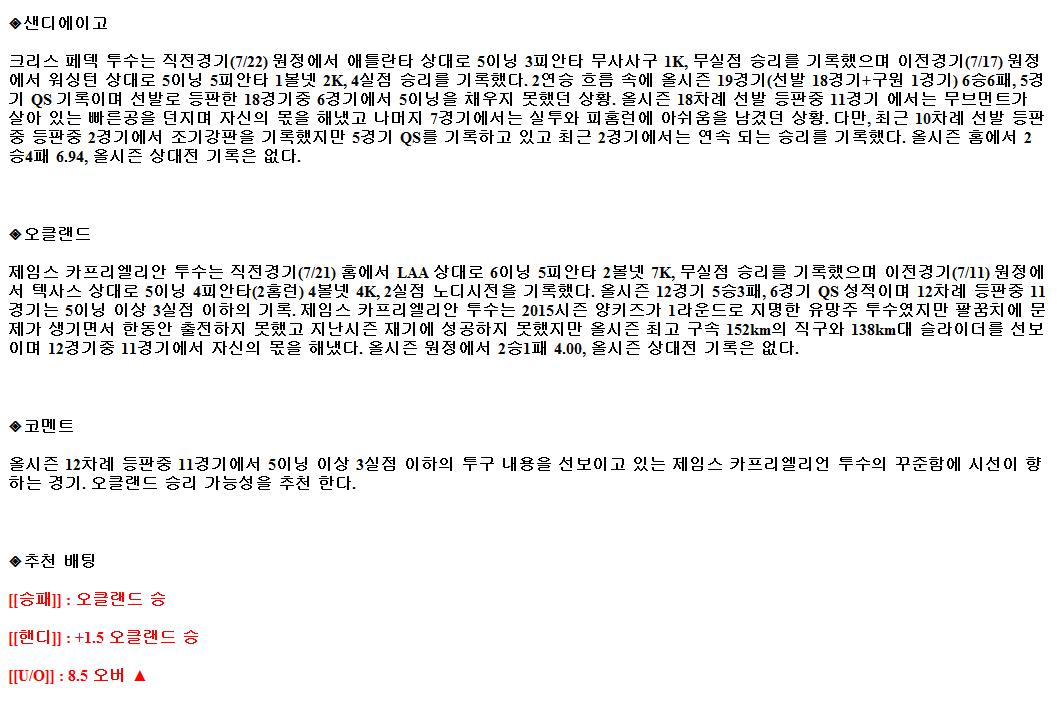2021년7월28일 오클랜드 어슬레틱스 샌디에이고 파드리스 해외야구중계