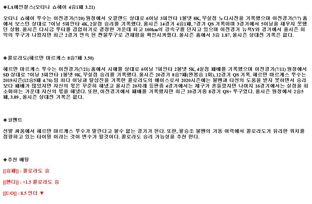 2021년7월27일 콜로라도 로키스 LA 에인절스 해외야구중계