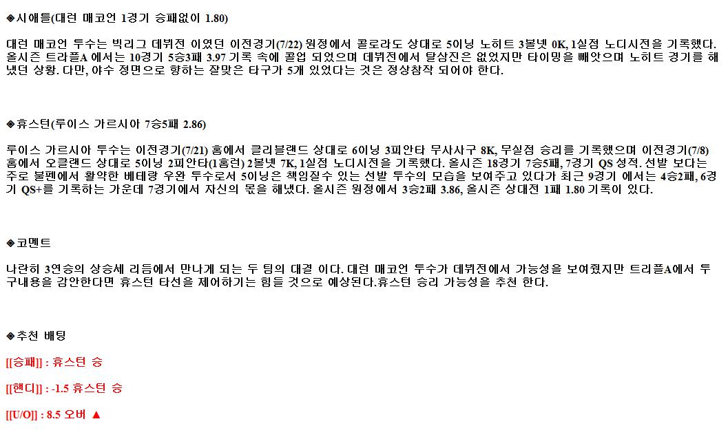 2021년7월27일 휴스턴 애스트로스 시애틀 매리너스 해외야구중계