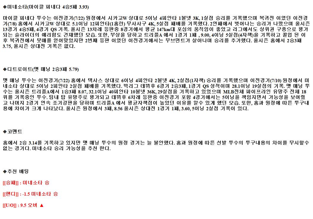 2021년7월27일 디트로이트 타이거즈 미네소타 트윈스 해외야구중계