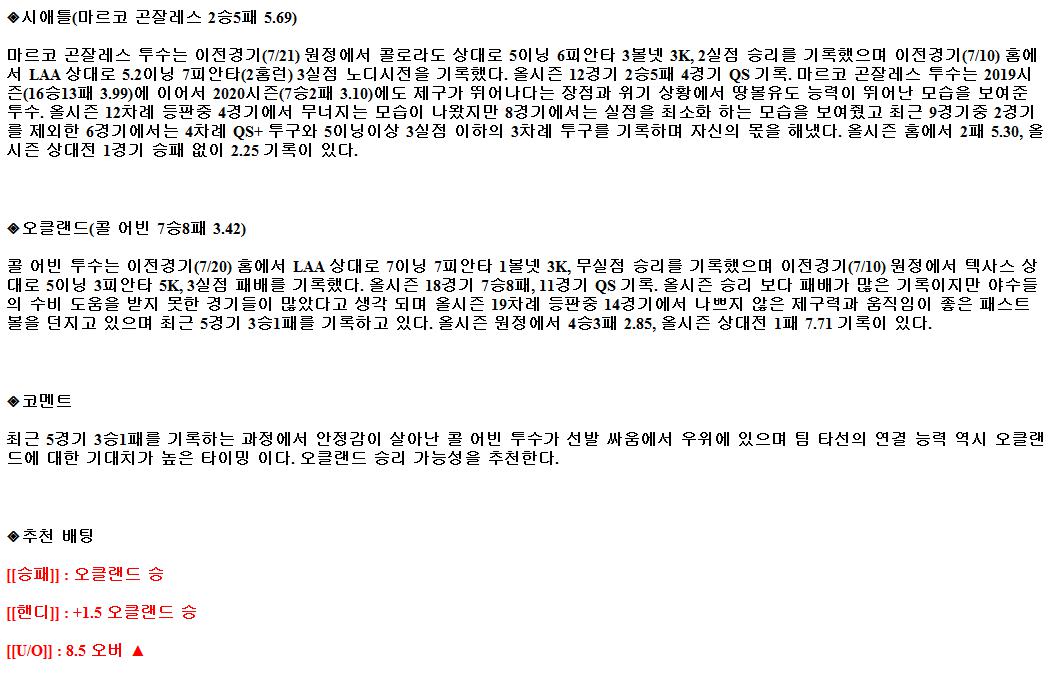 【MLB】 7월25일 캔자스시티 vs 디트로이트 해외야구분석