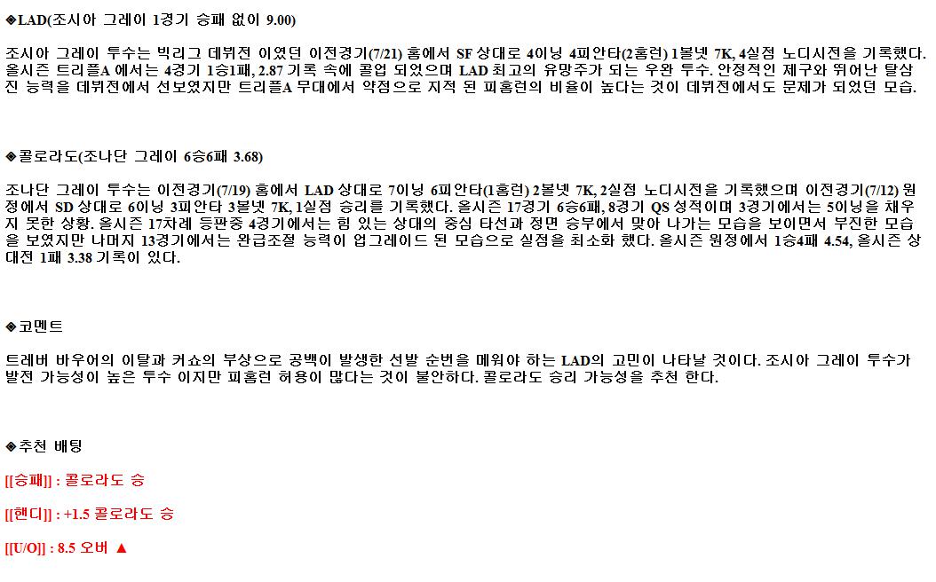 【MLB】 7월25일 캔자스시티 vs 디트로이트 해외야구분석