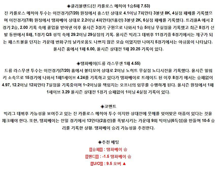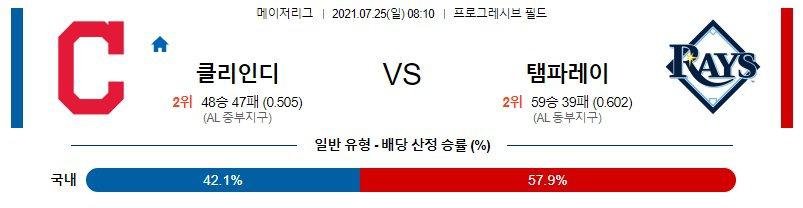 【MLB】 7월25일 클리블랜드 vs 템파베이 해외야구분석