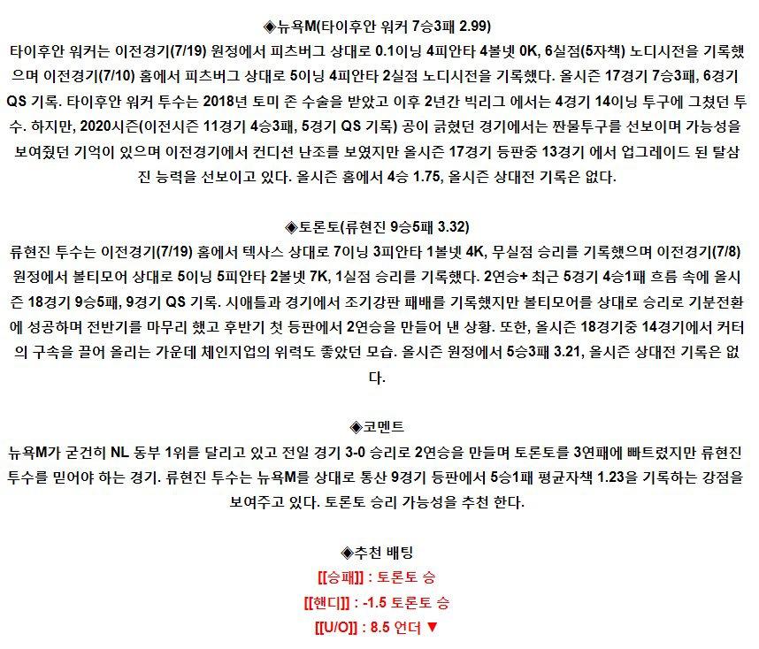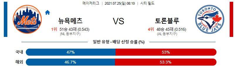 【MLB】 7월25일 뉴욕메츠 vs 토론토 해외야구분석