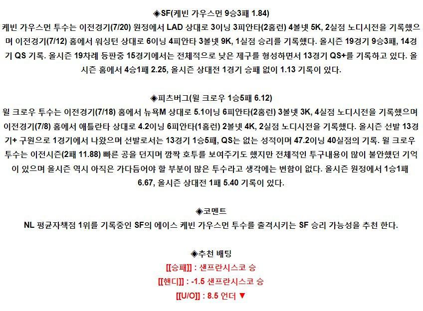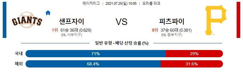 【MLB】 7월25일 샌프란시시코 vs 피츠버그 해외야구분석