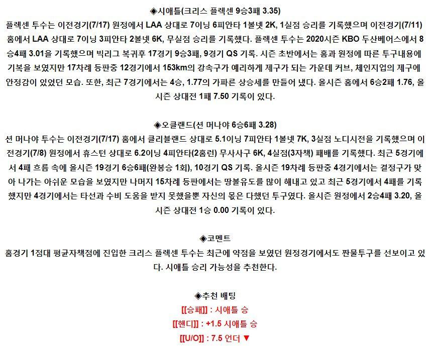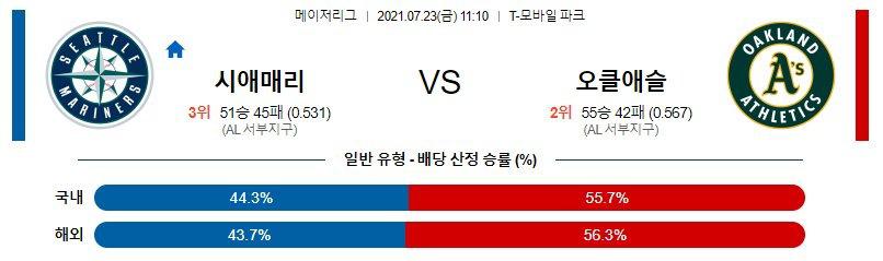 【MLB】 7월23일 시애틀 vs 오클랜드 야구분석 야구중계 해외야구중계 해외야구분석 MLB분석 MLB중계