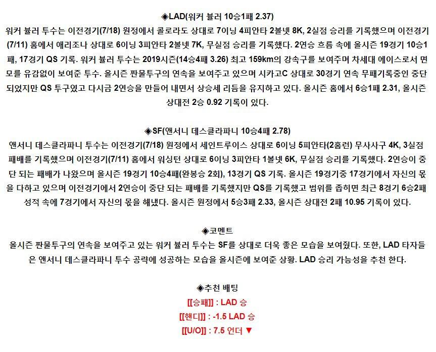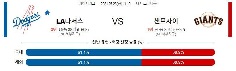 【MLB】 7월23일 LA다저스 vs 샌프란시스코 야구분석 야구중계 해외야구중계 해외야구분석 MLB분석 MLB중계