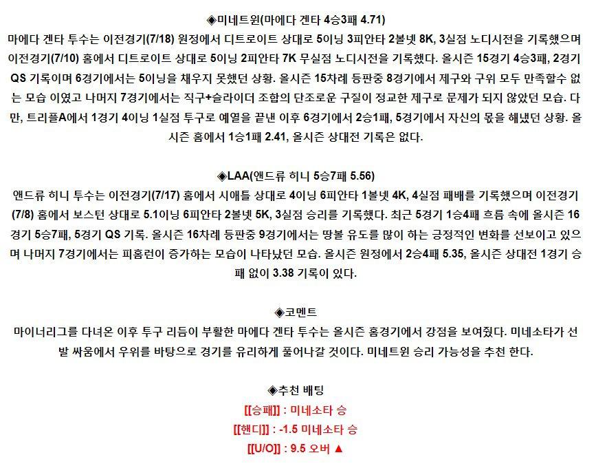【MLB】 7월23일 미네소타 vs LA에인절스 야구분석 야구중계 해외야구중계 해외야구분석 MLB분석 MLB…