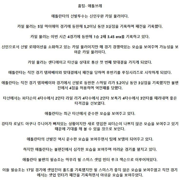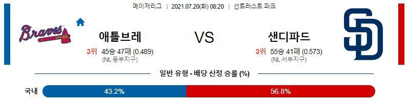 【MLB】 7월20일 애틀랜타 vs 샌디에이고 야구분석