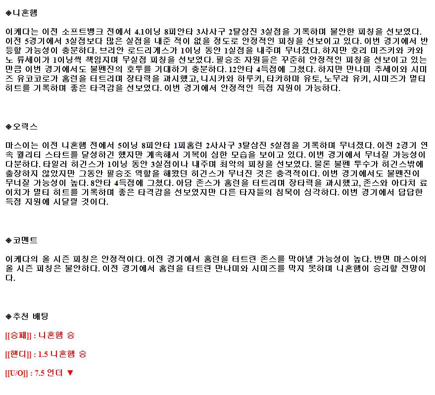 【NPB】7월 14일 닛폰햄 vs 오릭스