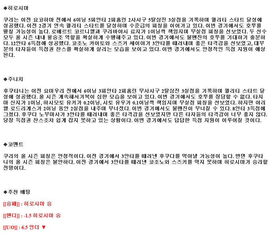 【NPB】7월 14일 닛폰햄 vs 오릭스