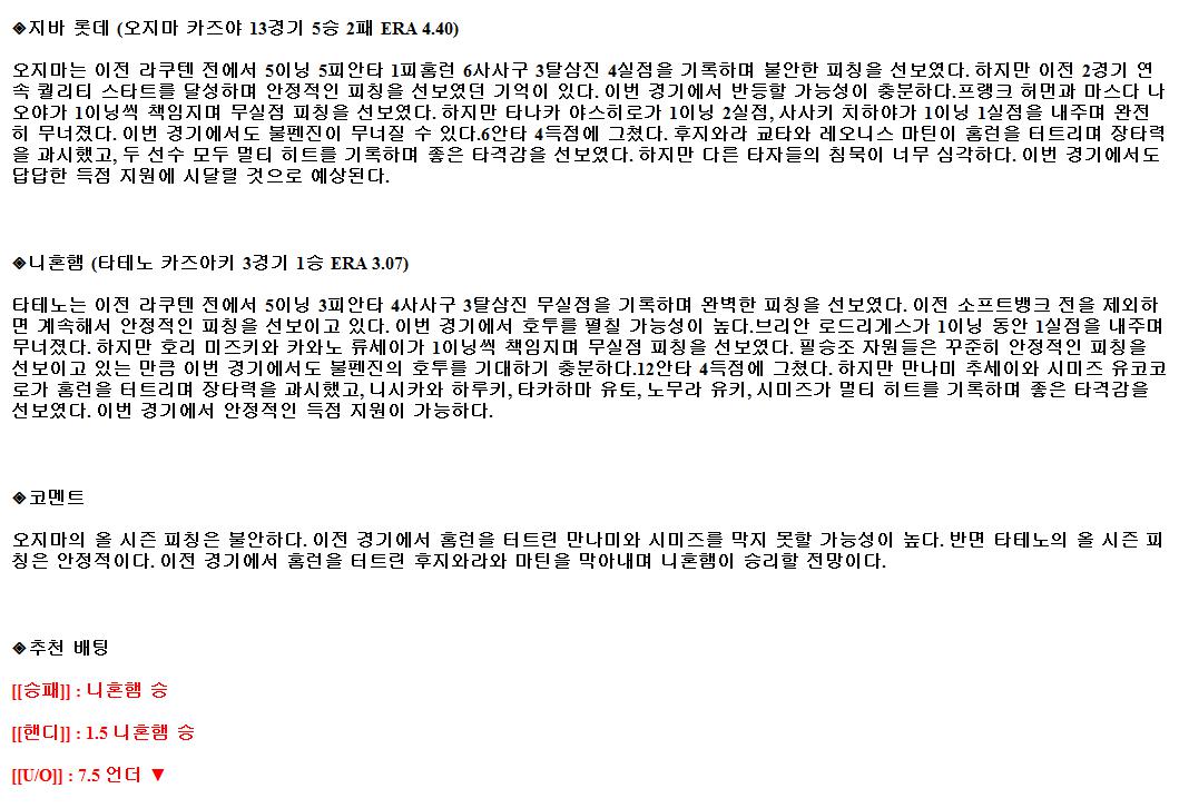 2021년7월11일 닛폰햄 파이터스 지바롯데 마린스 해외야구중계