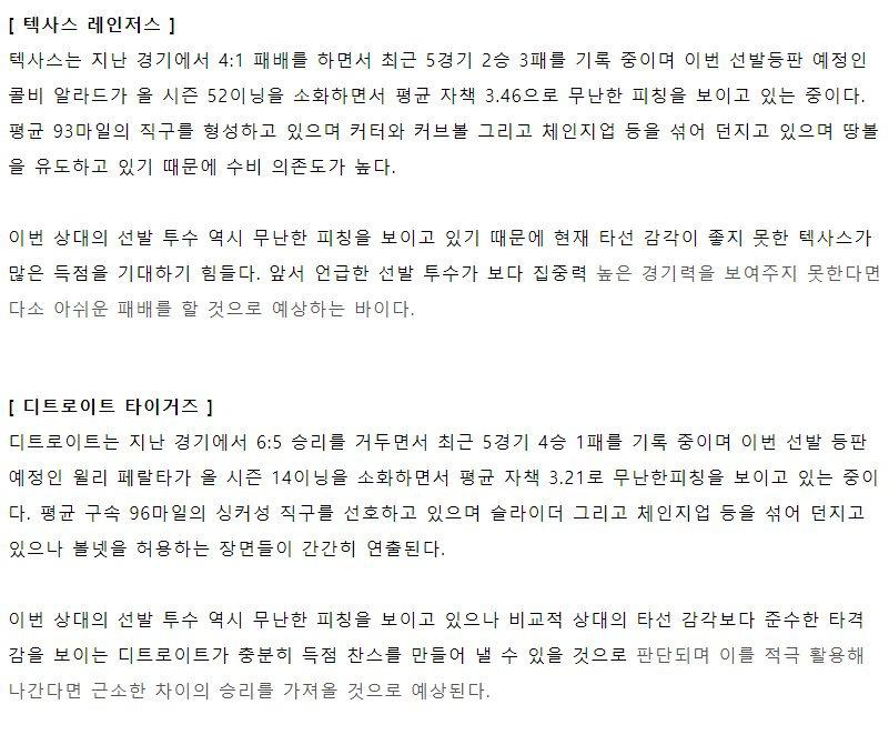 【MLB】 7월6일 텍사스 vs 디트로이트