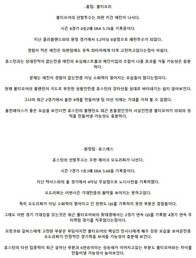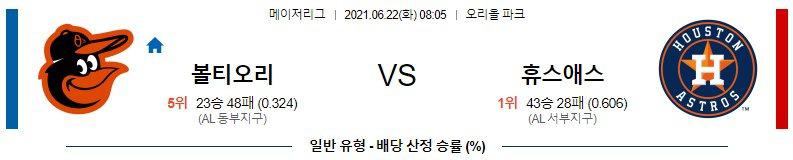 【MLB】 6월22일 볼티모어 vs 휴스턴 해외야구분석
