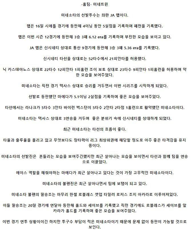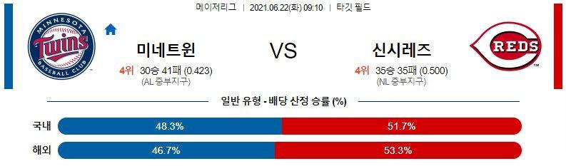 【MLB】 6월22일 미네소타 vs 신시내티 해외야구분석