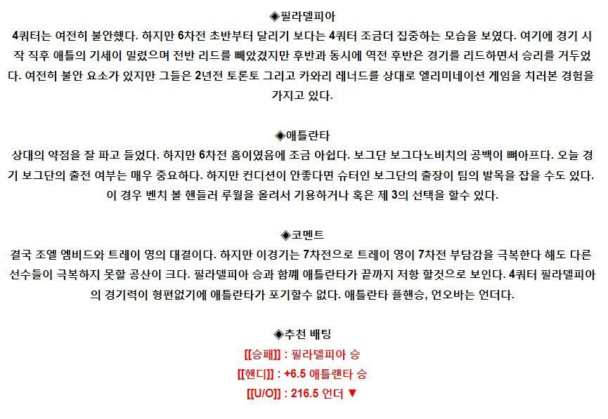 【NBA】 6월21일 필라델피아 vs 애틀랜타 농구분석
