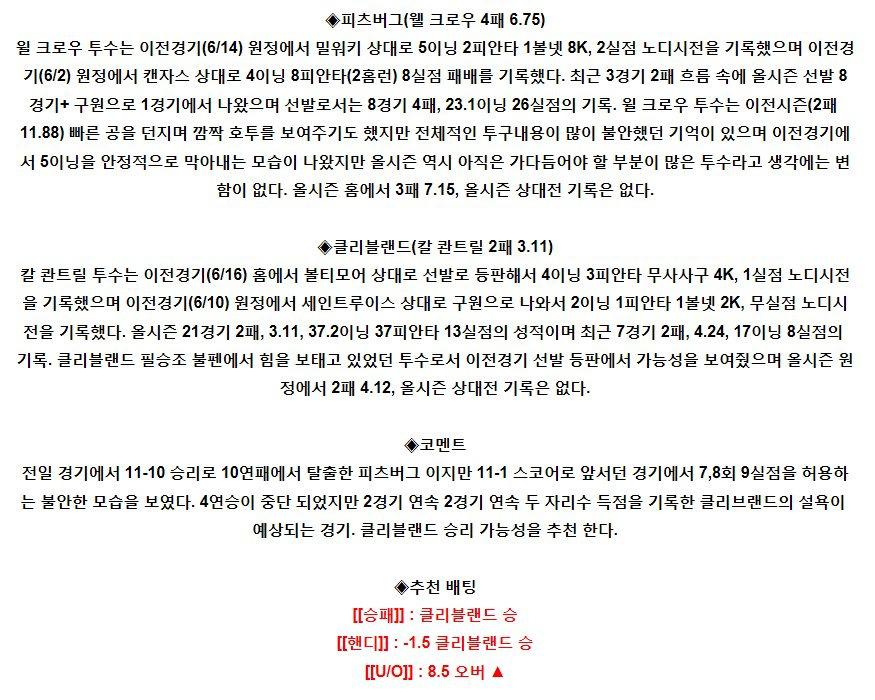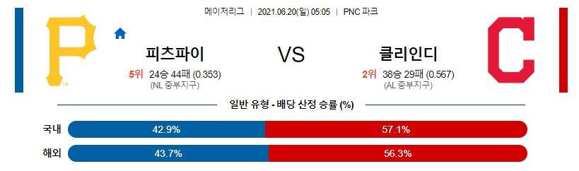 【MLB】 2021년 6월20일 피츠버그 vs 클리블랜드 해외야구분석