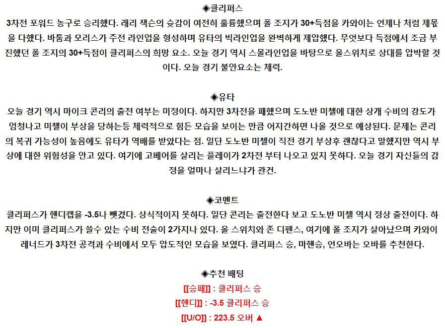 【NBA】 6월15일 LA클리퍼스 vs 유타재즈 해외농구분석