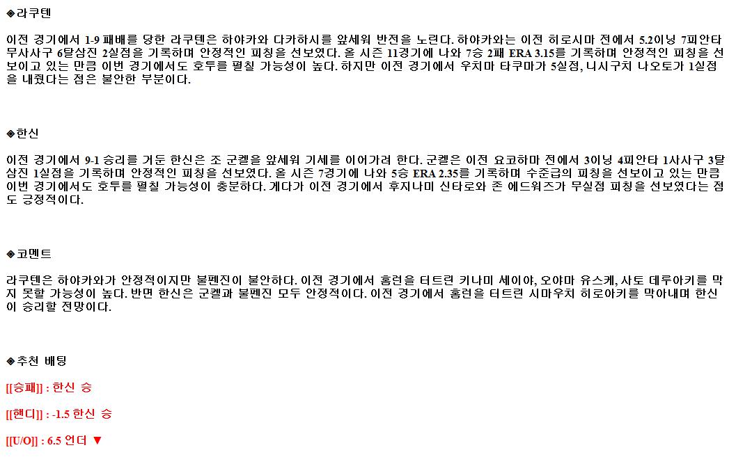 2021년6월13일 NPB 라쿠텐 한신 해외야구중계