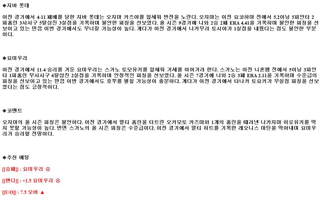 021년6월13일 NPB 지바롯데 요미우리 해외야구중계