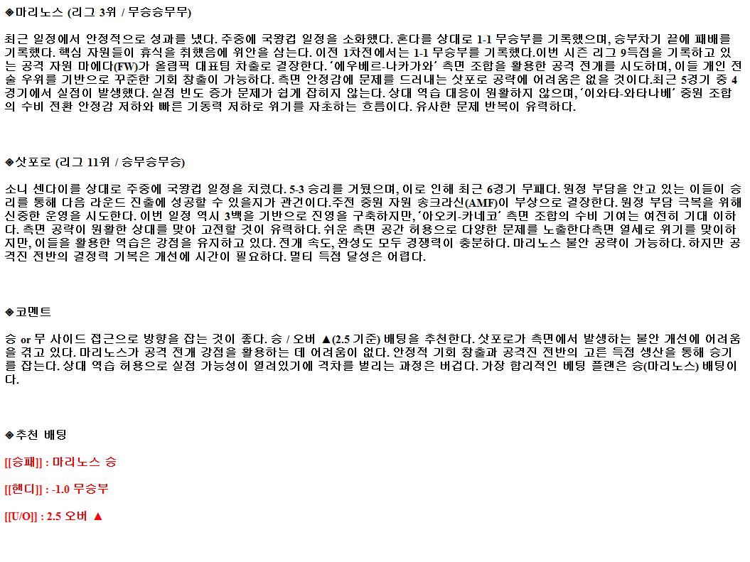 2021년6월13일 J리그컵 요코하마M 삿포로 해외축구중계