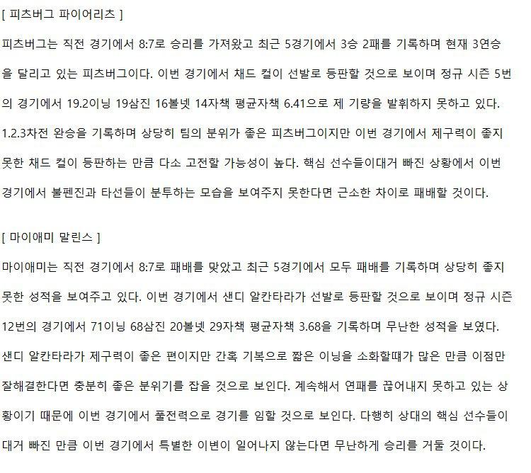 【MLB】 6월7일 피츠버그 vs 마이애미