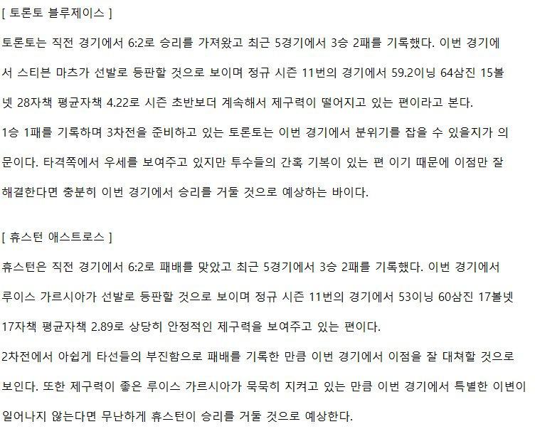 【MLB】 6월7일 토론토 vs 휴스턴