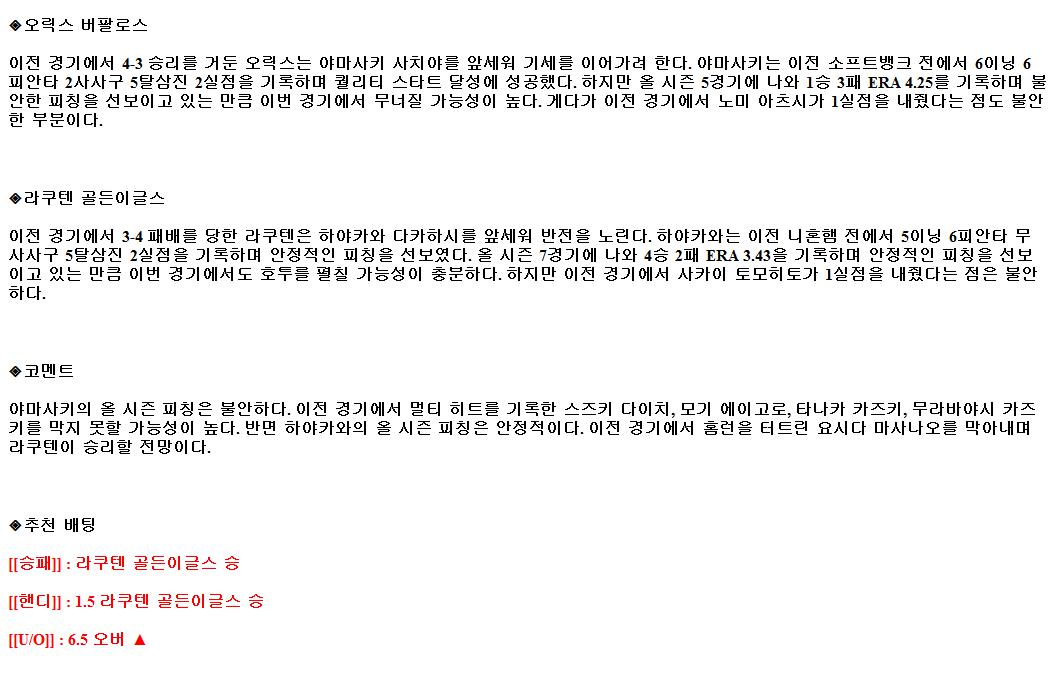 2021년5월16일 라쿠텐 골든이글스 오릭스 버팔로스 해외야구중계