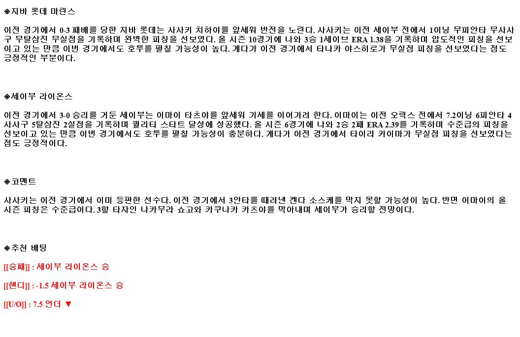 2021년5월16일 세이부 라이온스 지바롯데 마린스 해외야구중계
