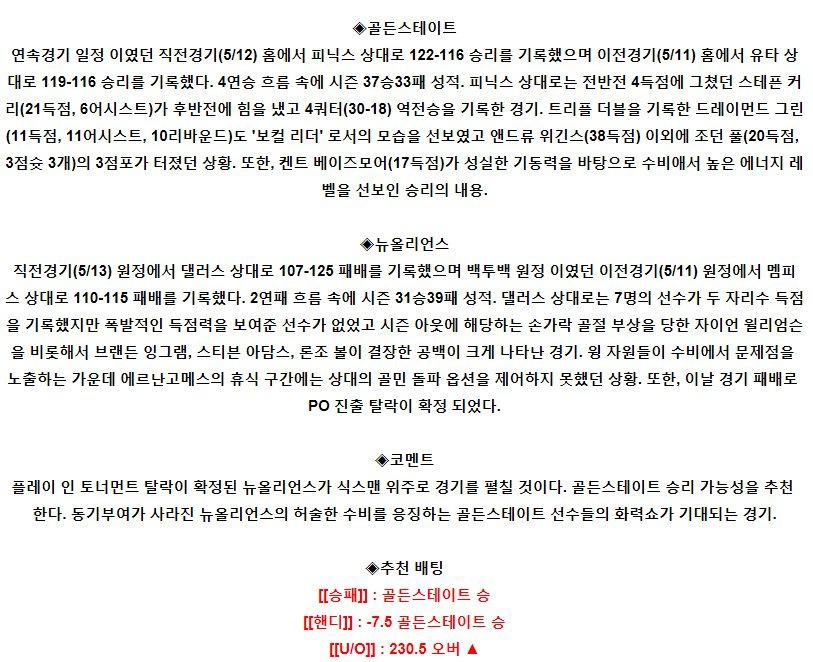 【NBA】 5월15일 골든스테이트 vs 뉴올리언스 해외농구분석
