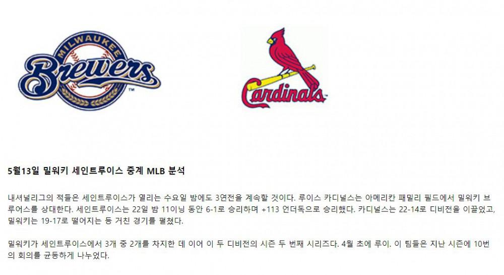 【MLB】 5월13일 밀워키 vs 세인트루이스 야구분석