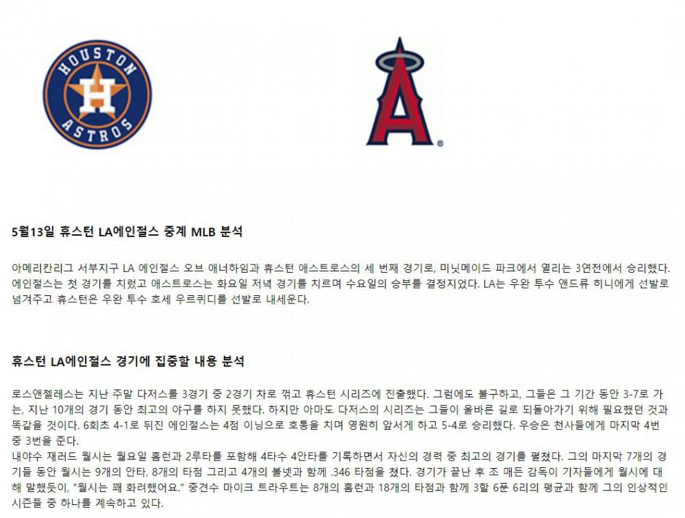 【MLB】 5월13일 휴스턴 vs LA에인절스 야구분석