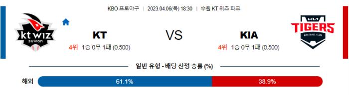 KBO분석 4월6일 KBO KT : 기아
