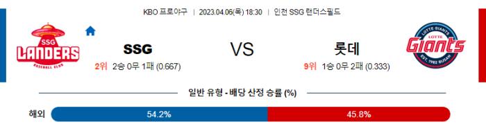 또한 지난1차전 최정이 홈런성 타구를 날렸고 최주환, 박성한, 한유섬도 안타를 기록하는 등 타격감이 나쁘지 않았고 SSG가 원정보다는 홈에서 더 많은 안타가 나오는 팀이라는 점도 더해본다면 오늘 경기는 SSG가 승리할 것으로 예상된다.