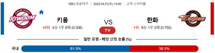 4월 1일 14:00 KBO 키움 : 한화