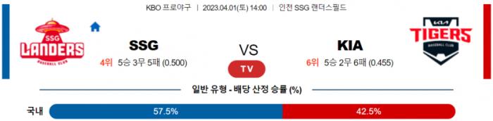 4월 1일 14:00 KBO SSG 랜더스 : KIA