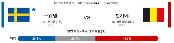 UEFA 유로컵 예선 3월 25일 04:45 스웨덴 : 벨기에