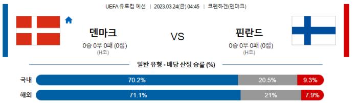 UEFA 유로컵 예선 3월 24일 04:45 덴마크 : 핀란드