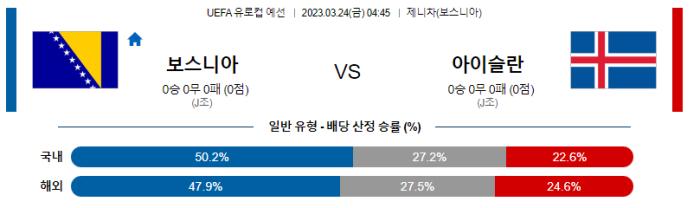UEFA 유로컵 예선 3월 24일 04:45 보스니아 헤르체고비나 : 아이슬란드