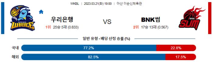 3월 21일 19:00 WKBL 우리은행 : BNK썸