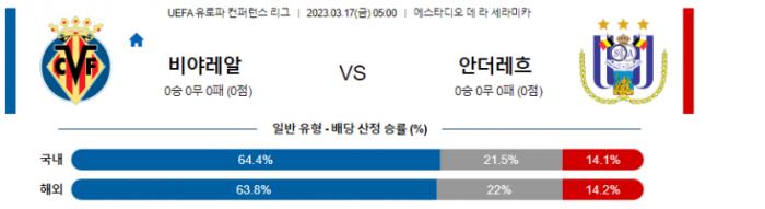 UEFA 유로파리그 3월 17일 05:00 비야레알 : 안더레흐트