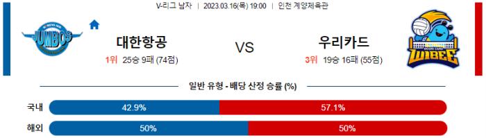 3월 16일 V-리그 남자 대한항공 : 우리카드