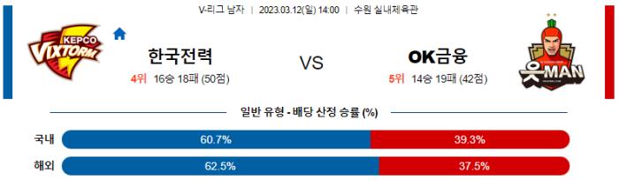 3월 12일 14:00 V-리그 남자 한국전력 : OK금융